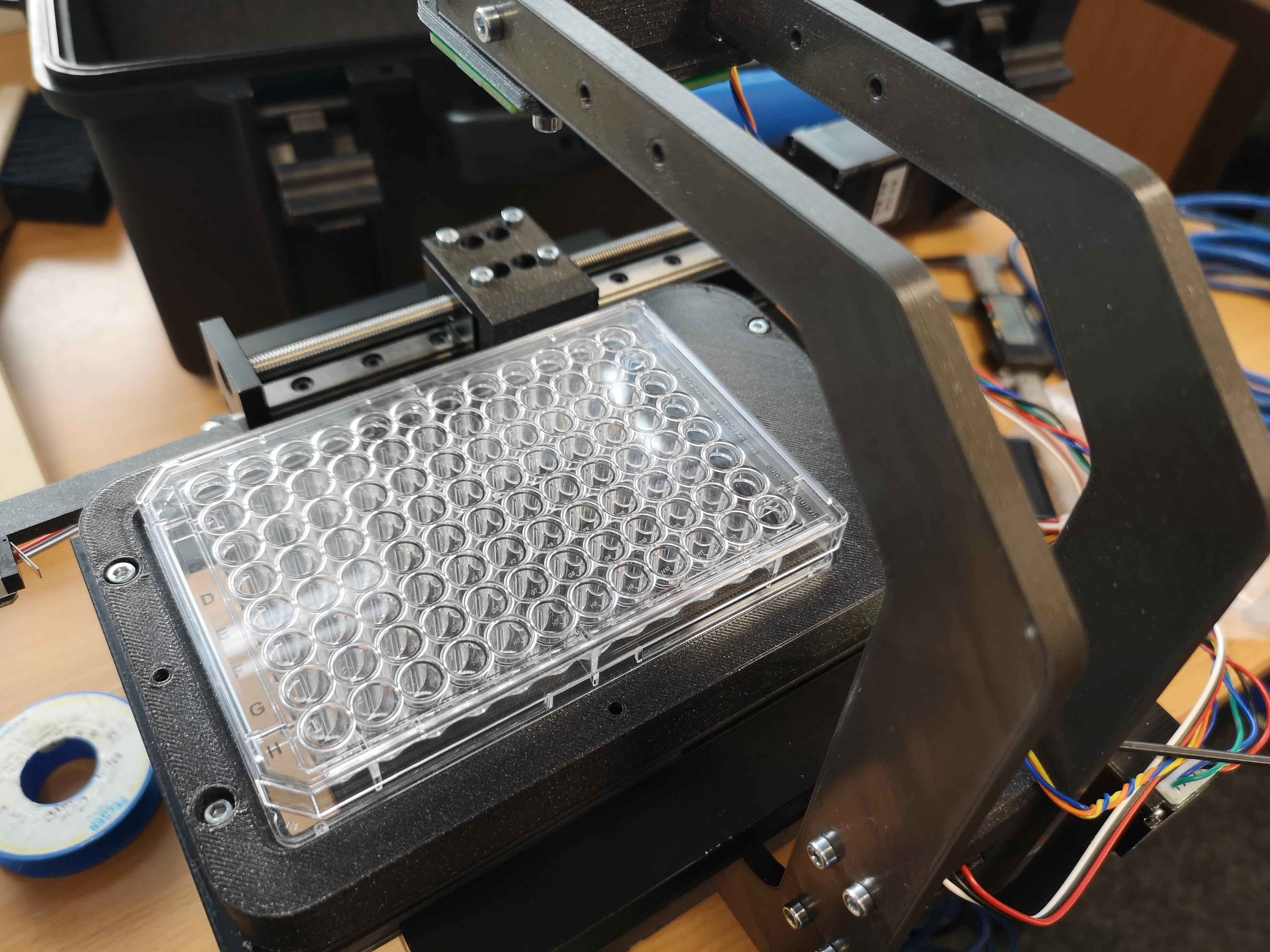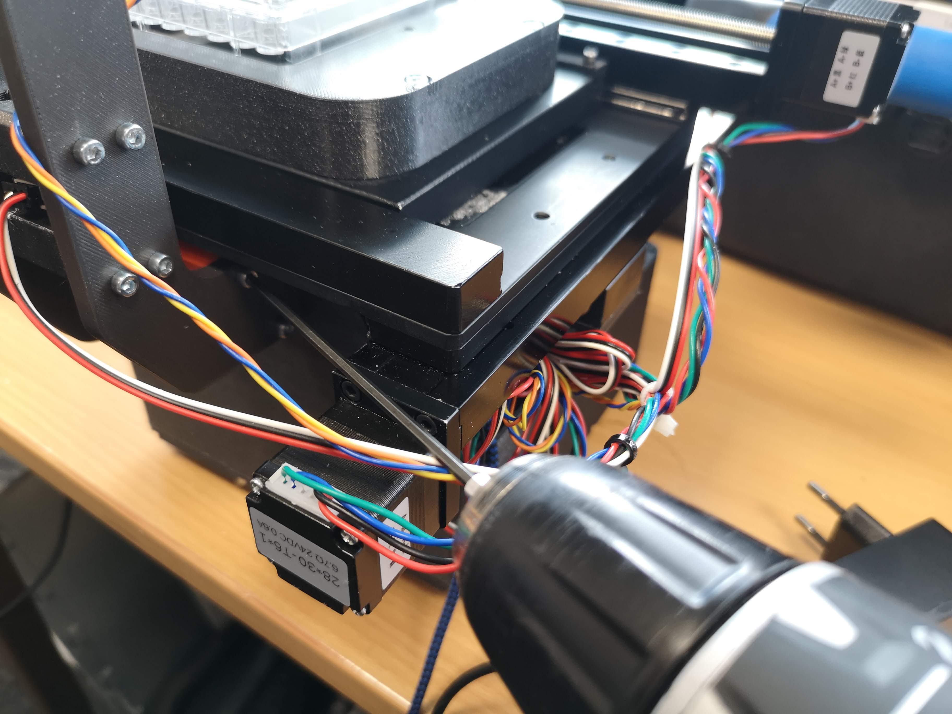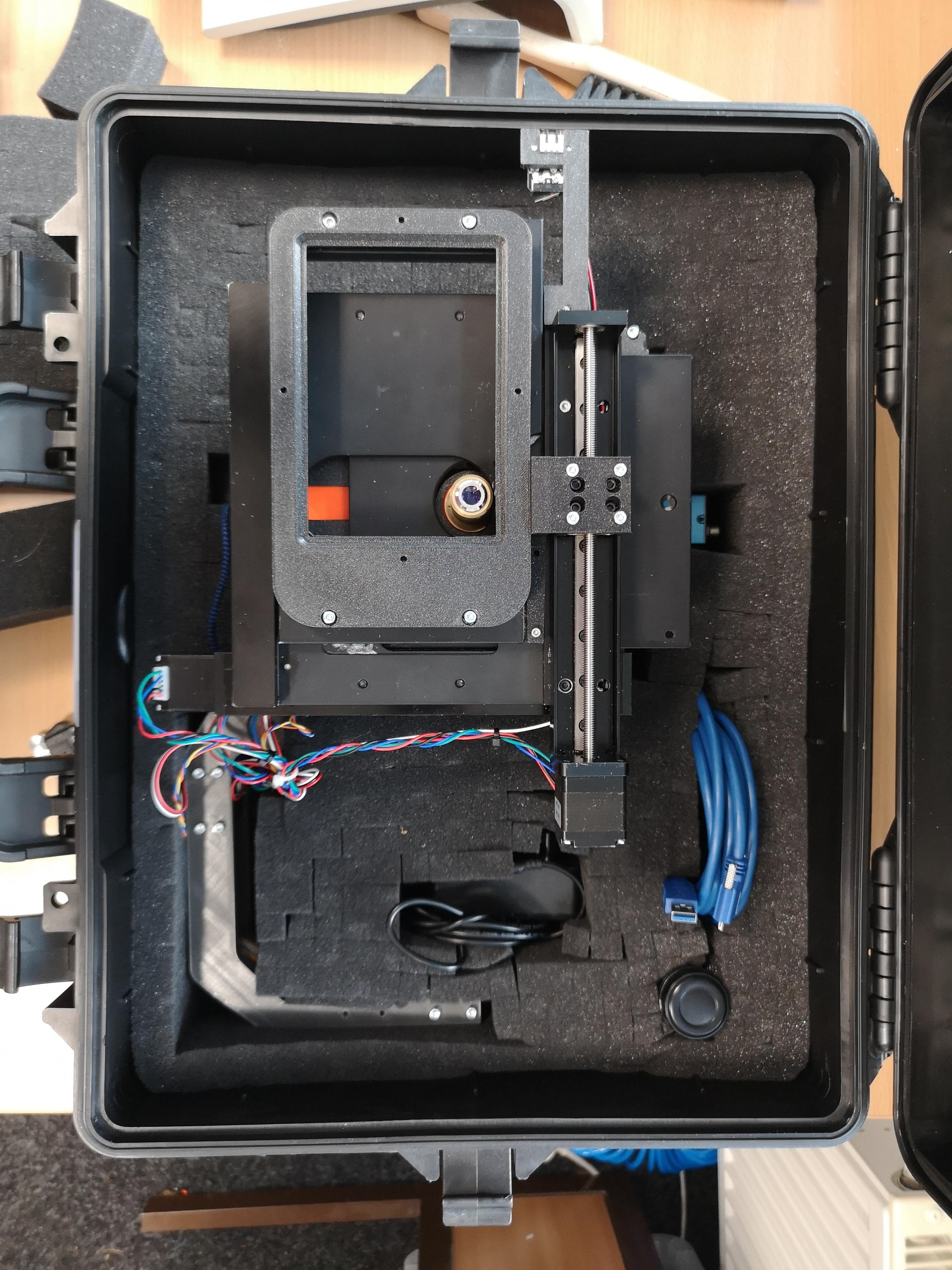First of all we need to wire up the microscope. For this we will start with the 12V power supply. Unfortunately the powersocket is inside the case, hence you have to first eat some candy in order to better find the spot ;-)