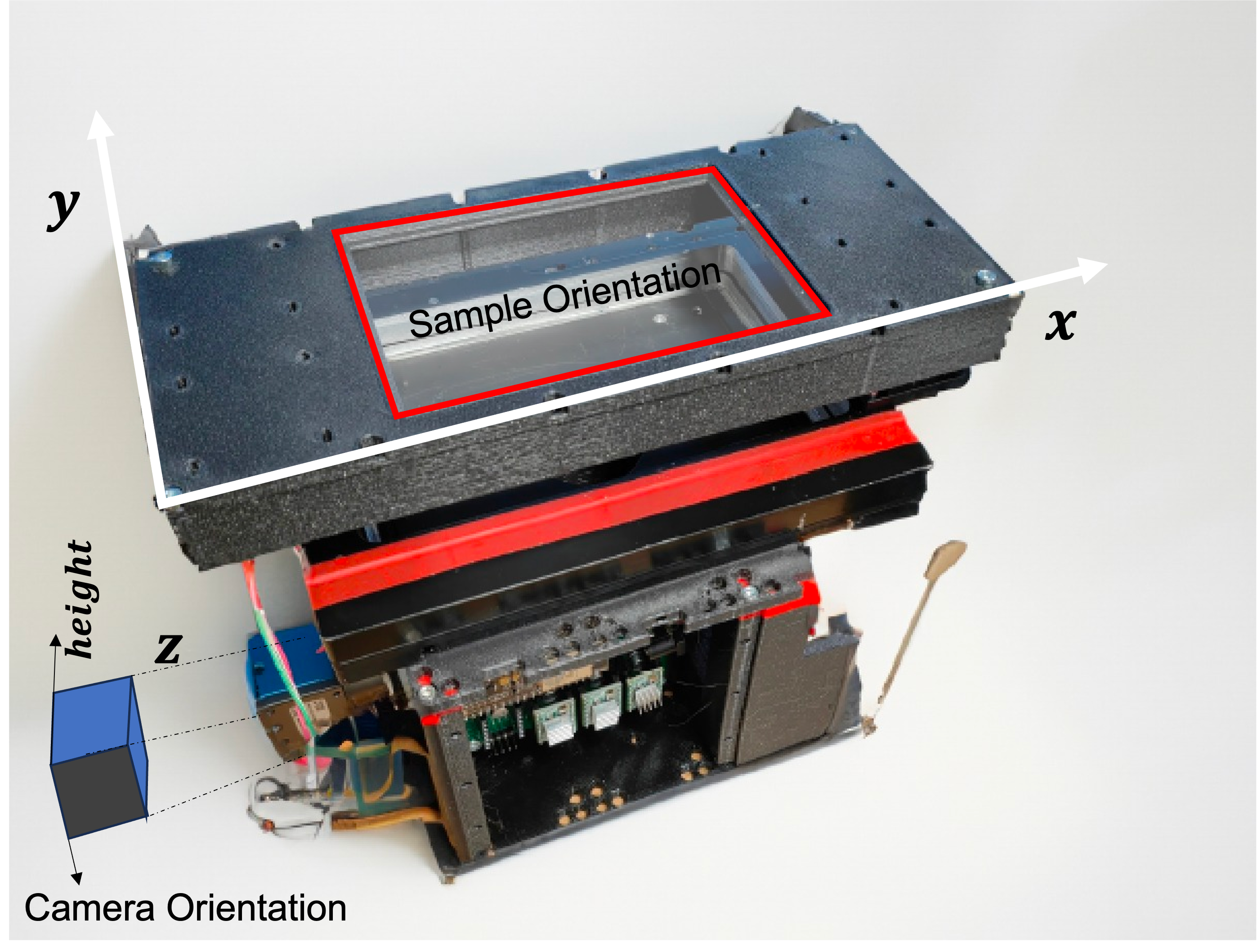 Correct orientation of the stage coordinates and camera coordinates is essential. The configuration ensures that the camera orientation matches the stage scanning positions.