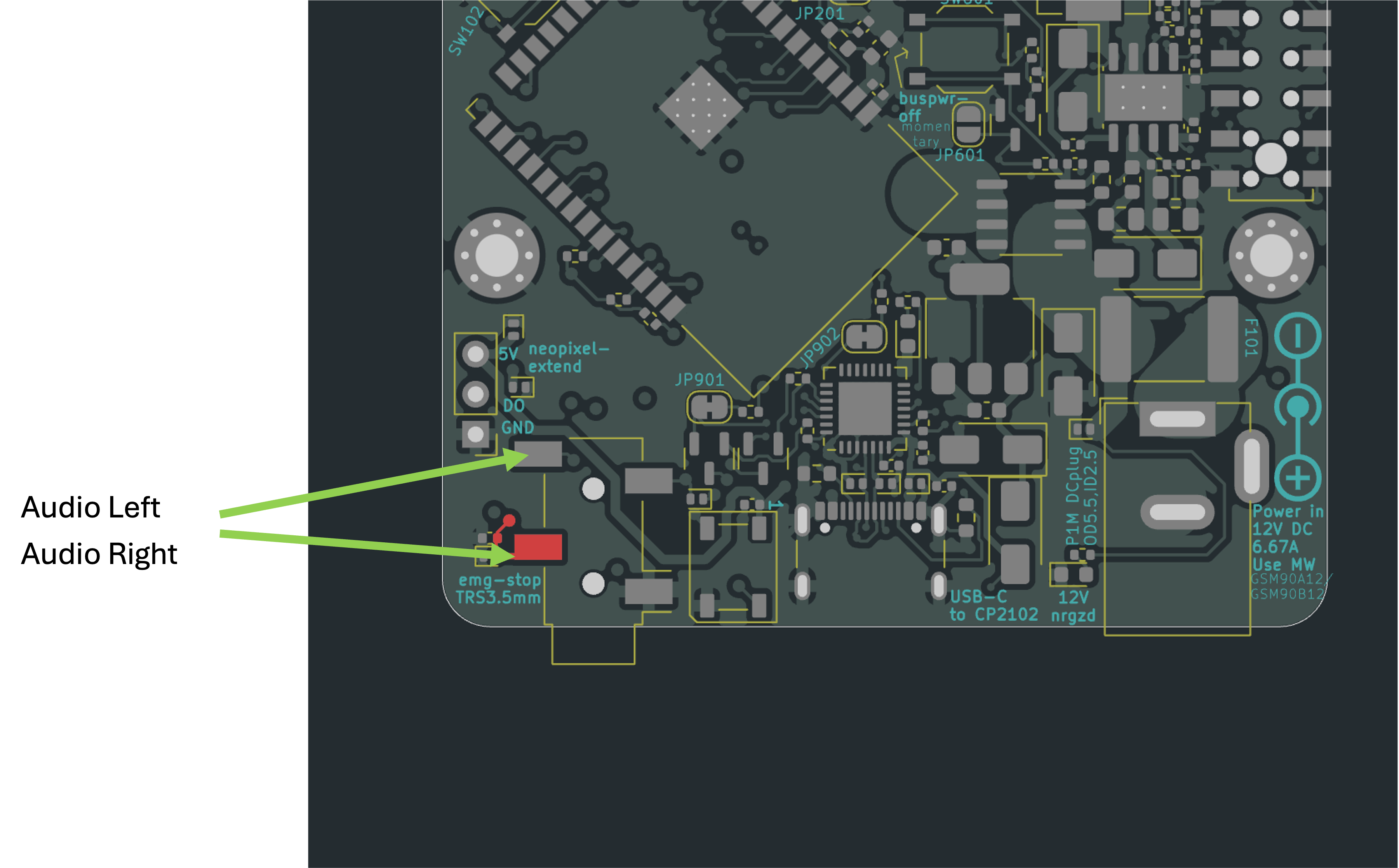 In order to have the correct 50 Ohm termination resistor and indication if the bus is running, you have to add solder pads here: