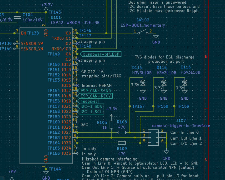 This is a HAT for the Raspberry Pi 5 that adapts the Raspberry pi to an esp32 that in turn talks to auxilary components like motors and illumination modules via CAN Bus and I2C (optionally).