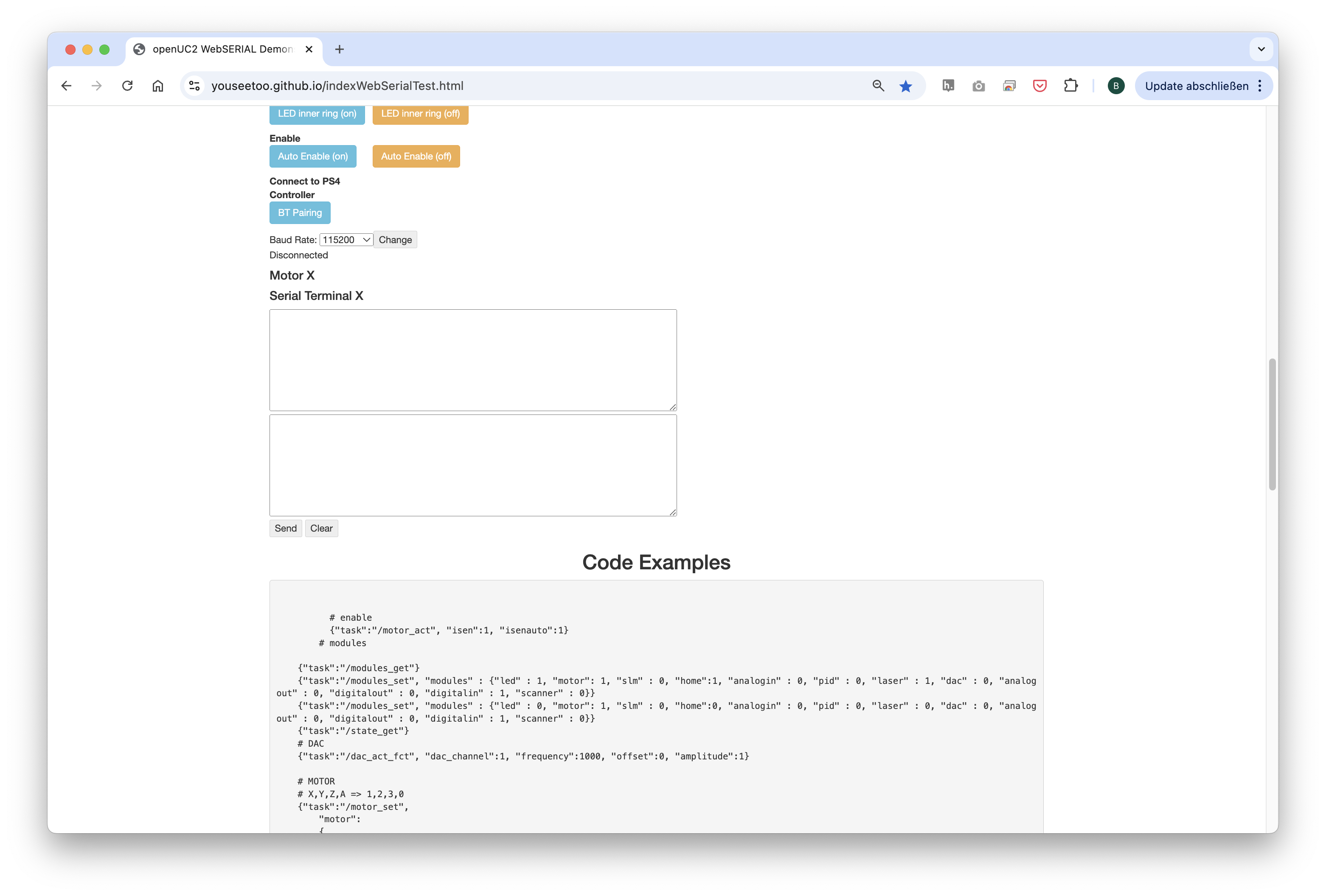 ###Step 4: testing in the Web Interface (valid since March 2025) After completing the test, go back to the first tab to control the other components via buttons: