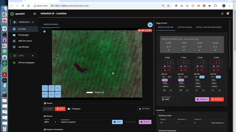 • acquisition is handled by ImSwitch (to control the camera, stage, and rotator you can use the ImSwitchClient available here: https://github.com/openuc2/imswitchclient)