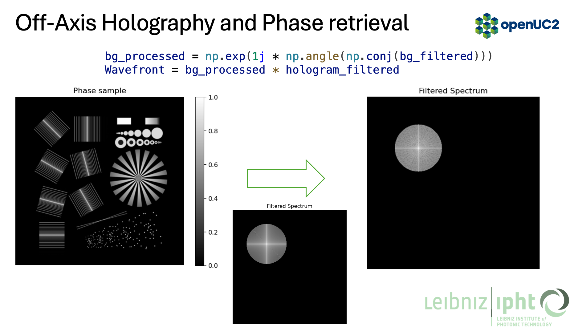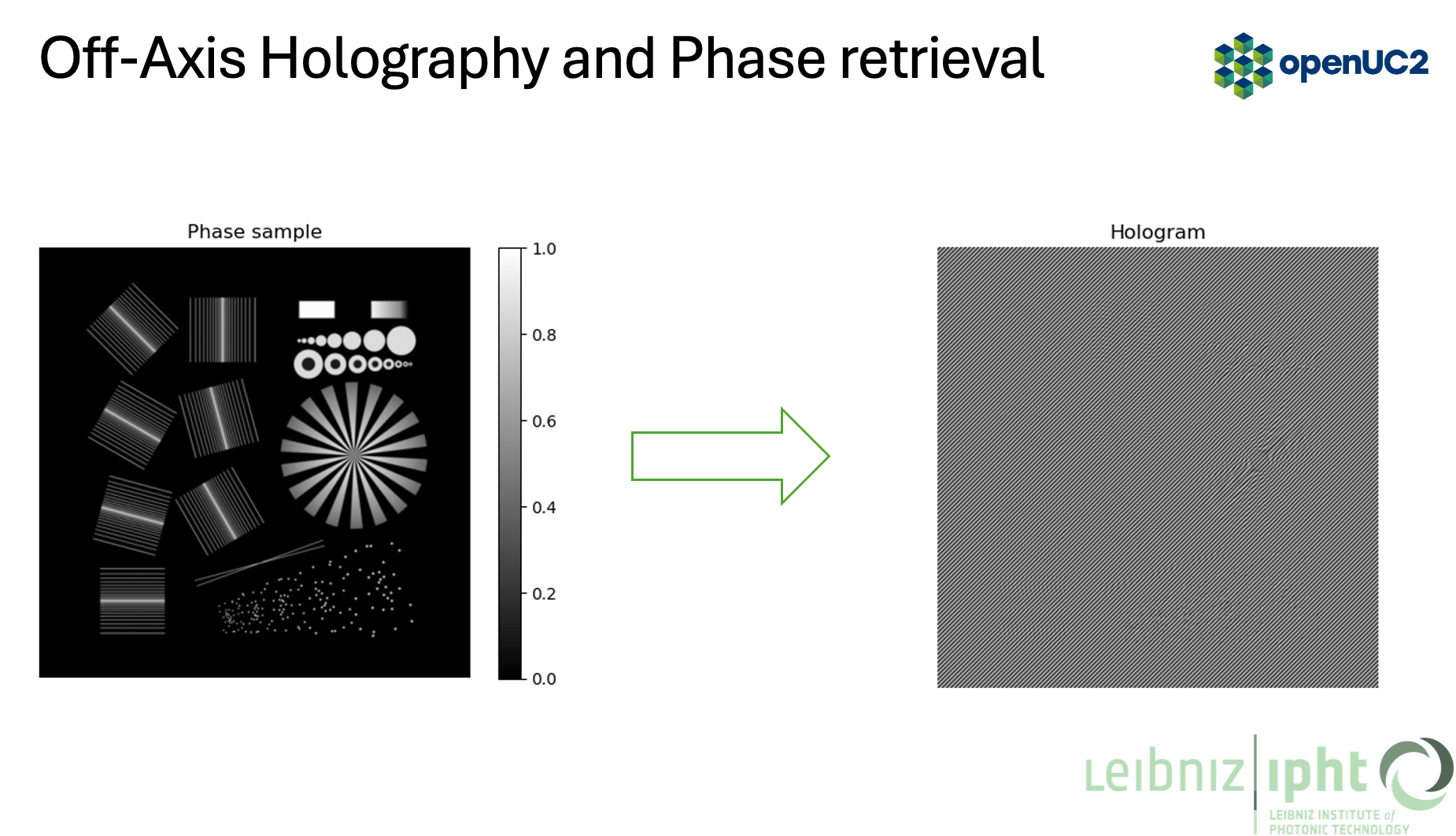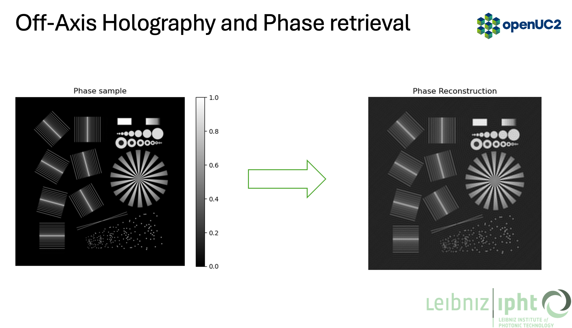 This section matches the pipeline in the figures: phase object -> hologram -> FFT -> filtered spectrum -> phase reconstruction.