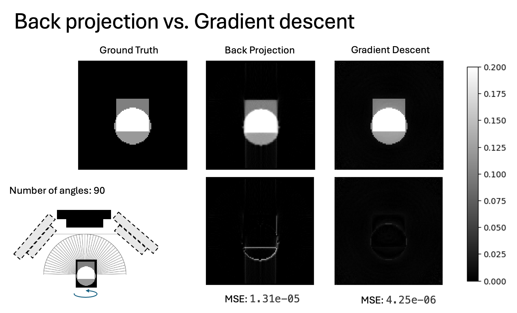 • optional inverse reconstruction (gradient-based) using the same forward model