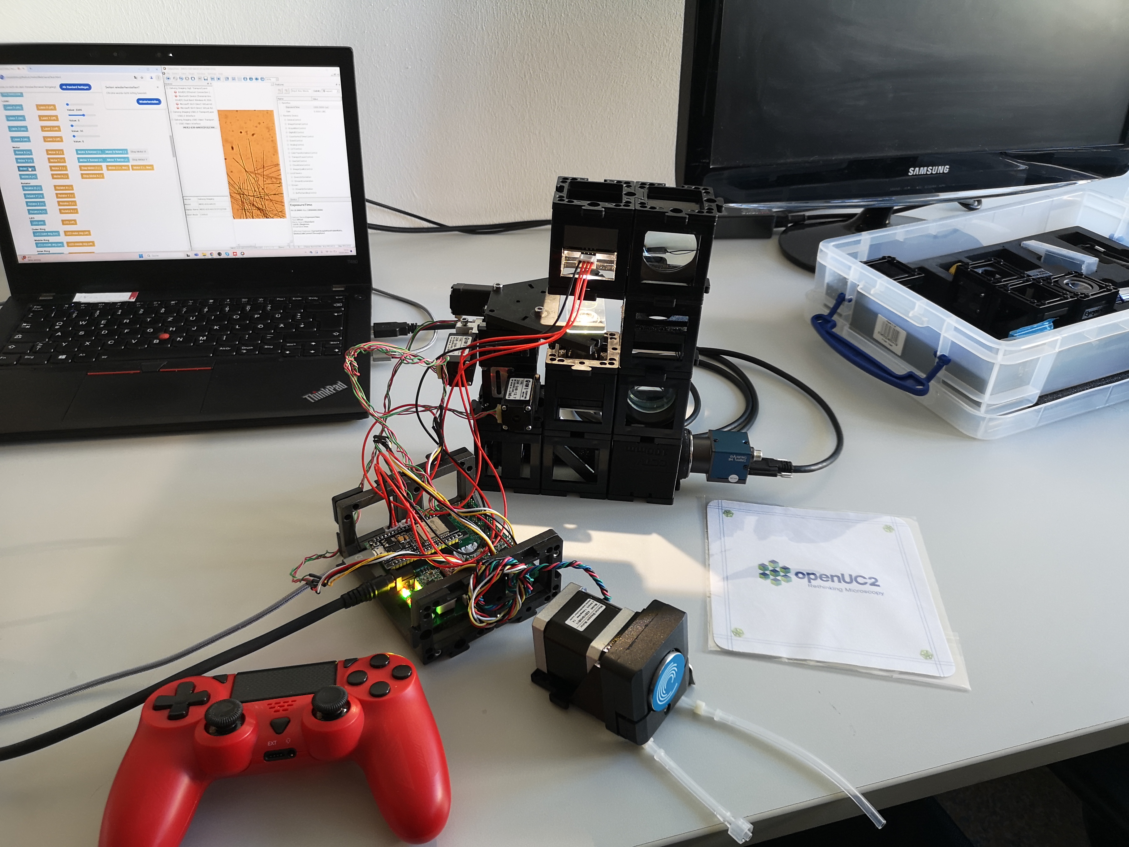 The XYZ stage is compatible with the UC2e system and can be conveniently controlled through multiple methods: